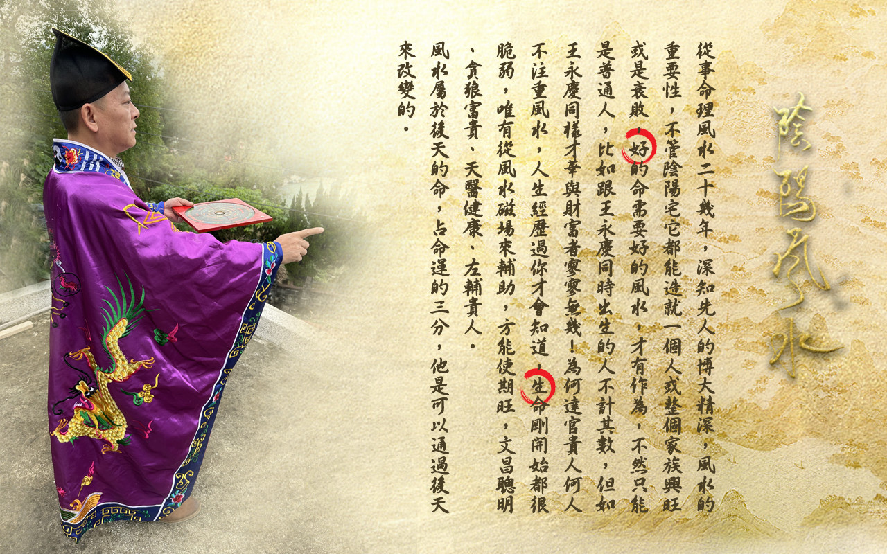 如果你的八字好就有30分,加上風水好40分,你的人生就及格了,再加上你的為人好,你就已經成功了,再加上你的功德樂善好施,你一定有個圓滿幸福的人生。